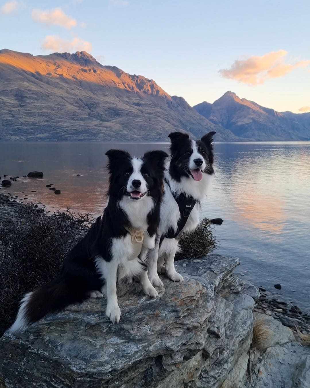 On the right is Kira. She's almost 8 years young. She's a tri-coloured Border Collie, originally born in England - She's a well traveled lady, she's had many adventures in her time. She became a NZ Citizen in 2019 and hasn't looked back since. Her favourite things are sticks, swimming in the lake and saying hi to every human she see's.